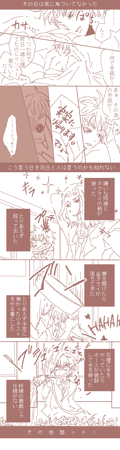 ※金タライ系とは文字どおり、上から唐突に金タライが落ちてきそうななんとなくしかし確実に不幸な様子(ただしあまり深刻ではない)です^^